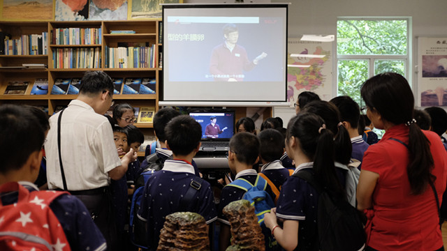 “什么是古生物?”“地球今年几岁了?”“恐龙究竟有多厉害?”“真的有水怪吗?”“为什么要研究这些‘石头’?”面对科普馆内琳琅满目的石头和化石,同学们纷纷发出疑问。针对这些问题,老科学家志愿者以不同地质年代的标志性生物为例,如寒武纪的藻类、奥陶纪的角石群体、石炭纪的蕨类、白垩纪的恐龙蛋等,带领同学们进行了一次丰富多彩的生物演化史之旅。通过与科学家的交流互动,孩子们完全沉浸在与自然科学对话的神奇世界之中,他们了解到如何利用14C同位素技术辨别甲骨文化石的真假;如何在深海对石油、天然气进行开采,开采的技术难度在哪里;火山周围的农作物为何营养价值更高;岩石分为哪几大类,它们的作用是什么;如何利用显微镜观察矿物结构;研究各类矿石的意义在于什么,科学家们是如何研究这些矿石的等地学科普知识。