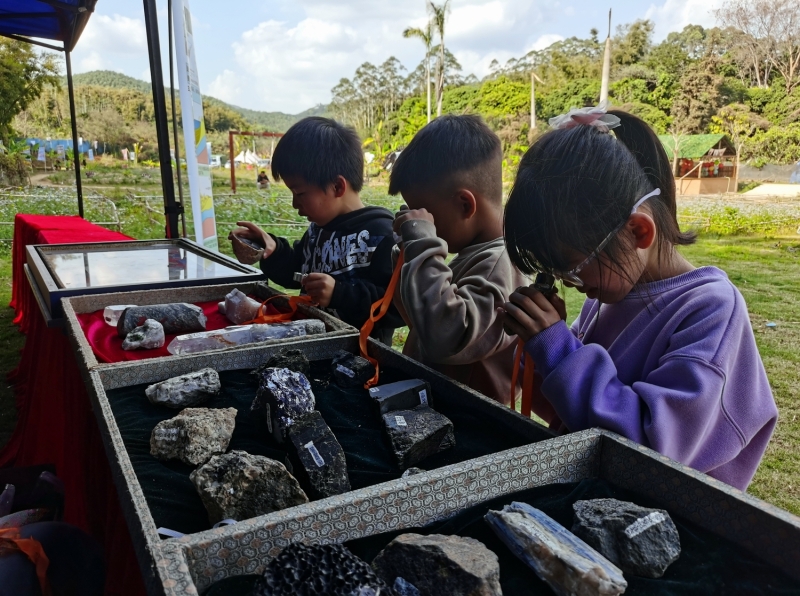 1月19日,为推动广州地区科学知识的普及,提升市民科学素养,由广州市科学技术局主办,广东科学中心、广州科普联盟、中新镇第二社工站、金山地质博物馆承办,中国科学院广州地球化学研究所、广州市果树科学研究所、广东粤微食用菌技术有限公司、文搏3D打印科普研学教育基地、广州益力多乳品有限公司协办的广州科普“五进”活动来到增城区,走进广州市增城区中新镇濠迳村——金山地质小镇,科普集市通过多元互动展示,丰富的科普内容及体验,吸引了周边居民亲子参与体验。