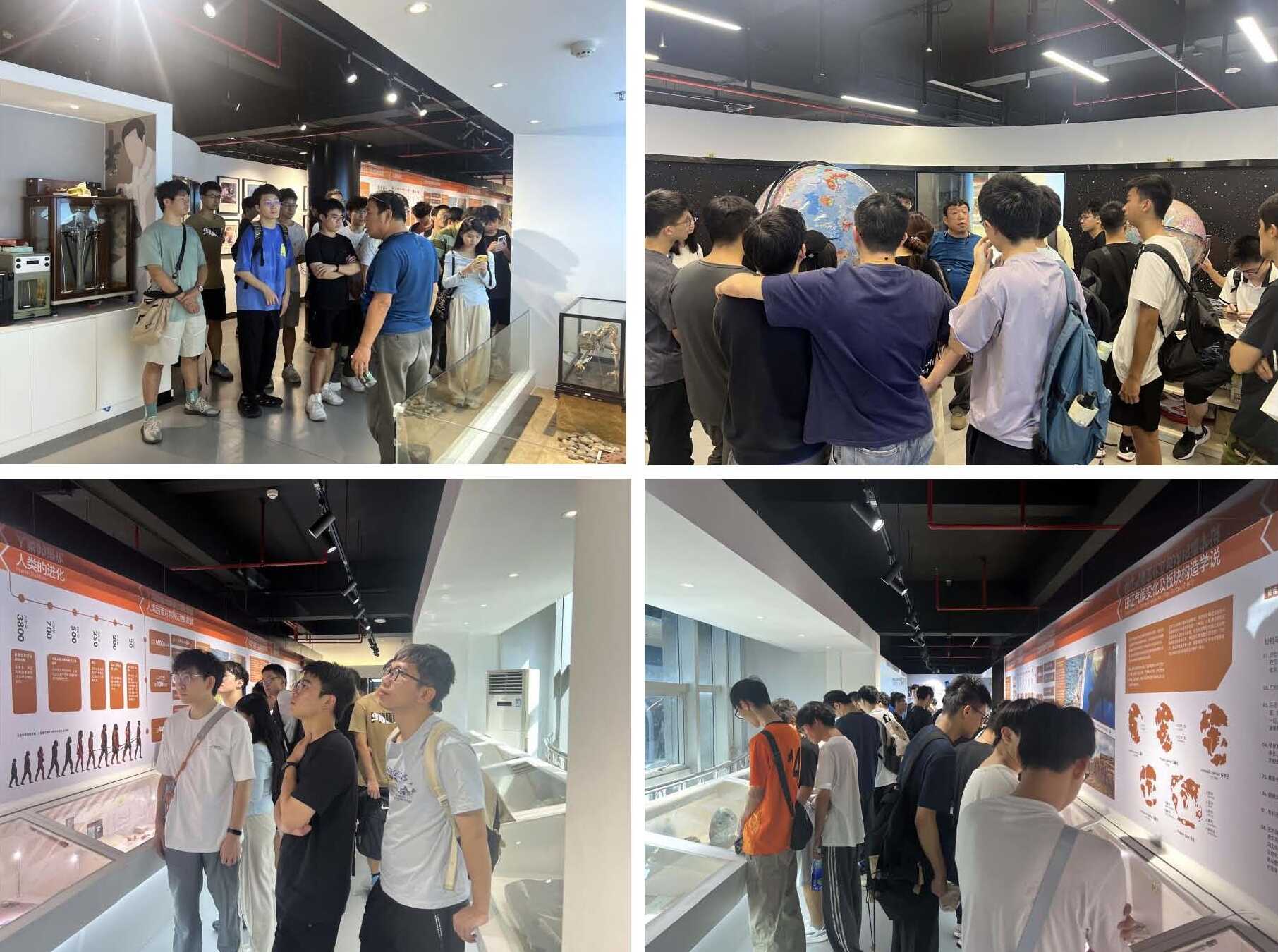 地学与资源科普基地标本陈列馆展厅内的每一件地质标本都是大自然的杰作,每一处陈列都在诉说着地球历史长河中的故事。同学们在专业讲解员的带领下依次参观了“我们的世界”“地球脉动”“矿物岩石”“矿产资源”“化石”“仰望星空”等多个特色展厅。讲解员们用生动有趣的语言,将亿万年的地球演变史娓娓道来,让沉默的岩石和化石“开口说话”。讲解员向同学们介绍了地球的内部构造与外部地形地貌的形成与发展、三大岩类的判别、矿物和矿产资源的一些特性以及月球的形成与演化等知识。从地球诞生初期的混沌,到生命在海洋中孕育萌芽;从古老大陆的漂移聚合,到生物在陆地和天空中繁衍进化,同学们近距离观察承载地球变迁历史的展品,纷纷提出自己的问题,深入了解地质历史和知识,感受地球科学的魅力。