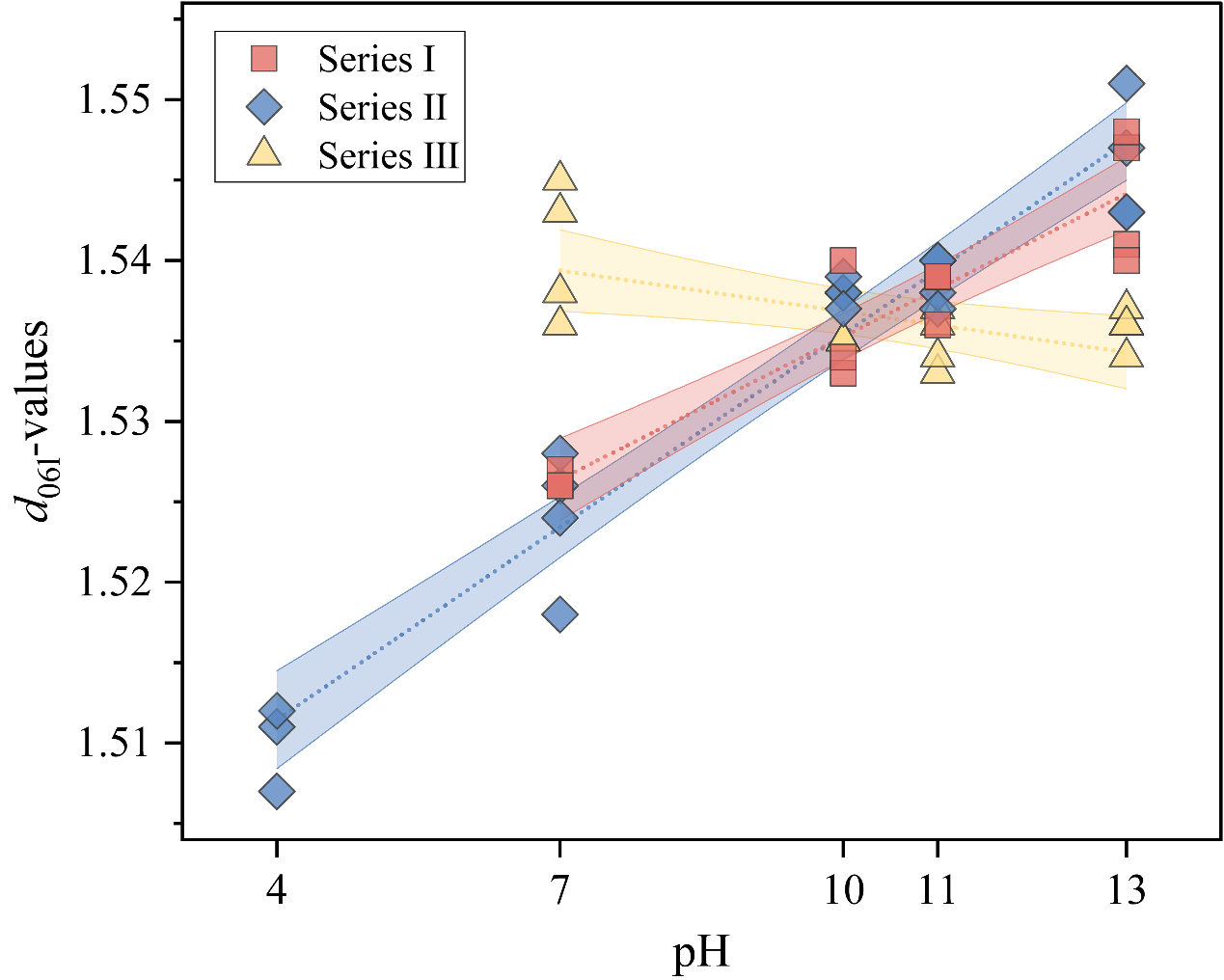 图4. 蒙皂石d06l值随pH值变化的图表